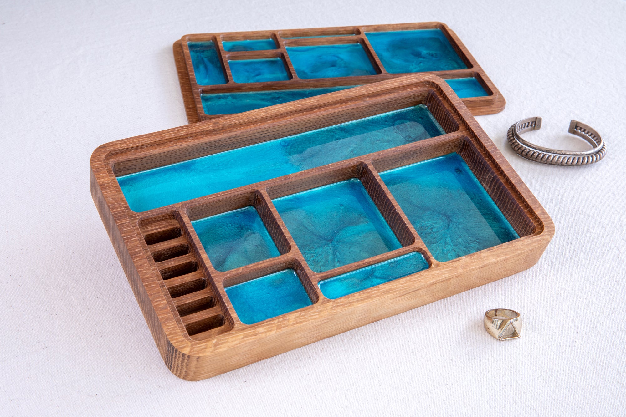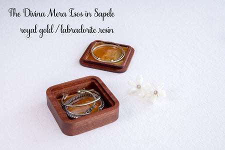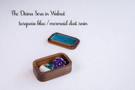 • Interior lined with custom-poured resin in three elegant hues, contrasting beautifully with the matte wood finish.