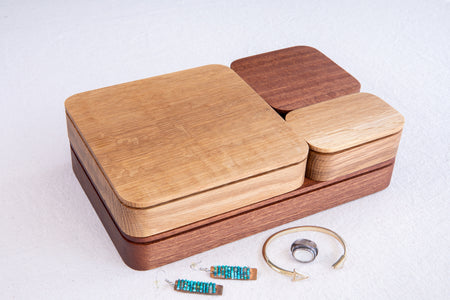 Handcrafted in the USA from 100% premium hardwood—quarter-sawn white oak, sapele, or walnut—each box is carved from a single wooden block for seamless grain continuity.